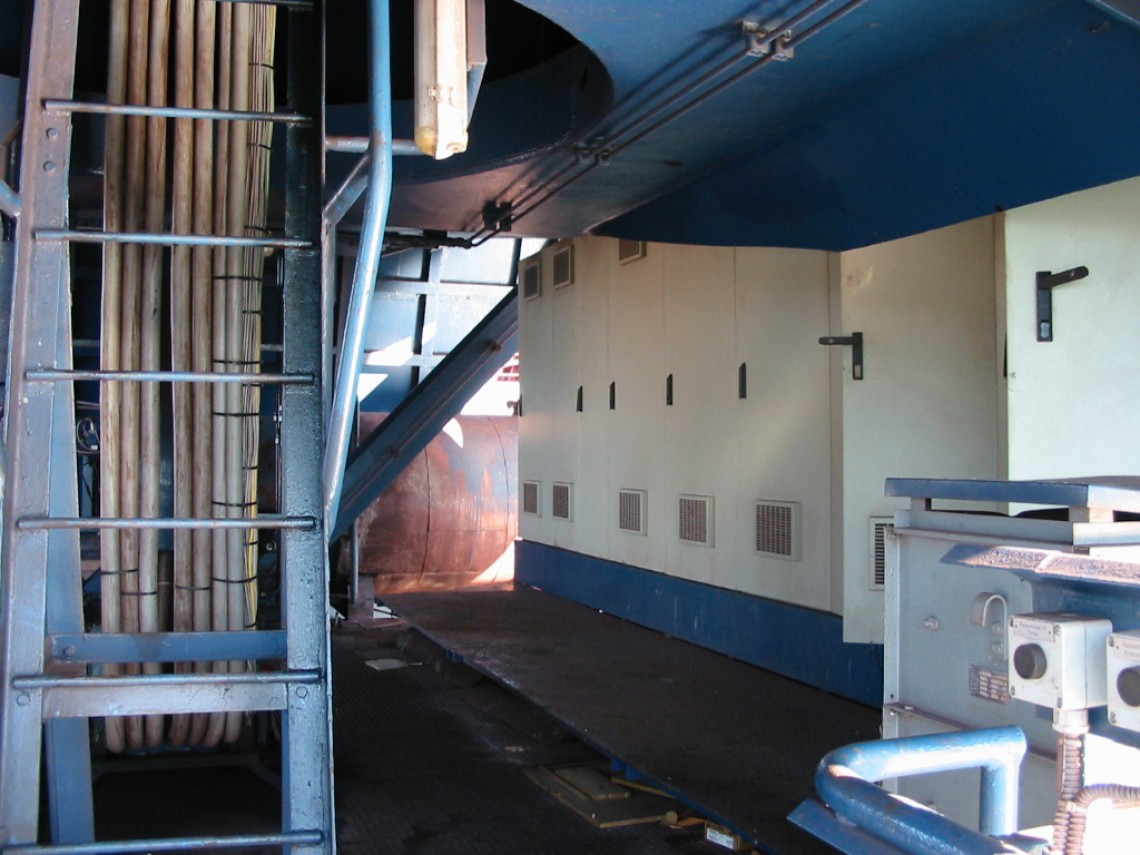 The machine was originally intended for unloading ships. The machine is upgraded with a transport line for the loading of ships.