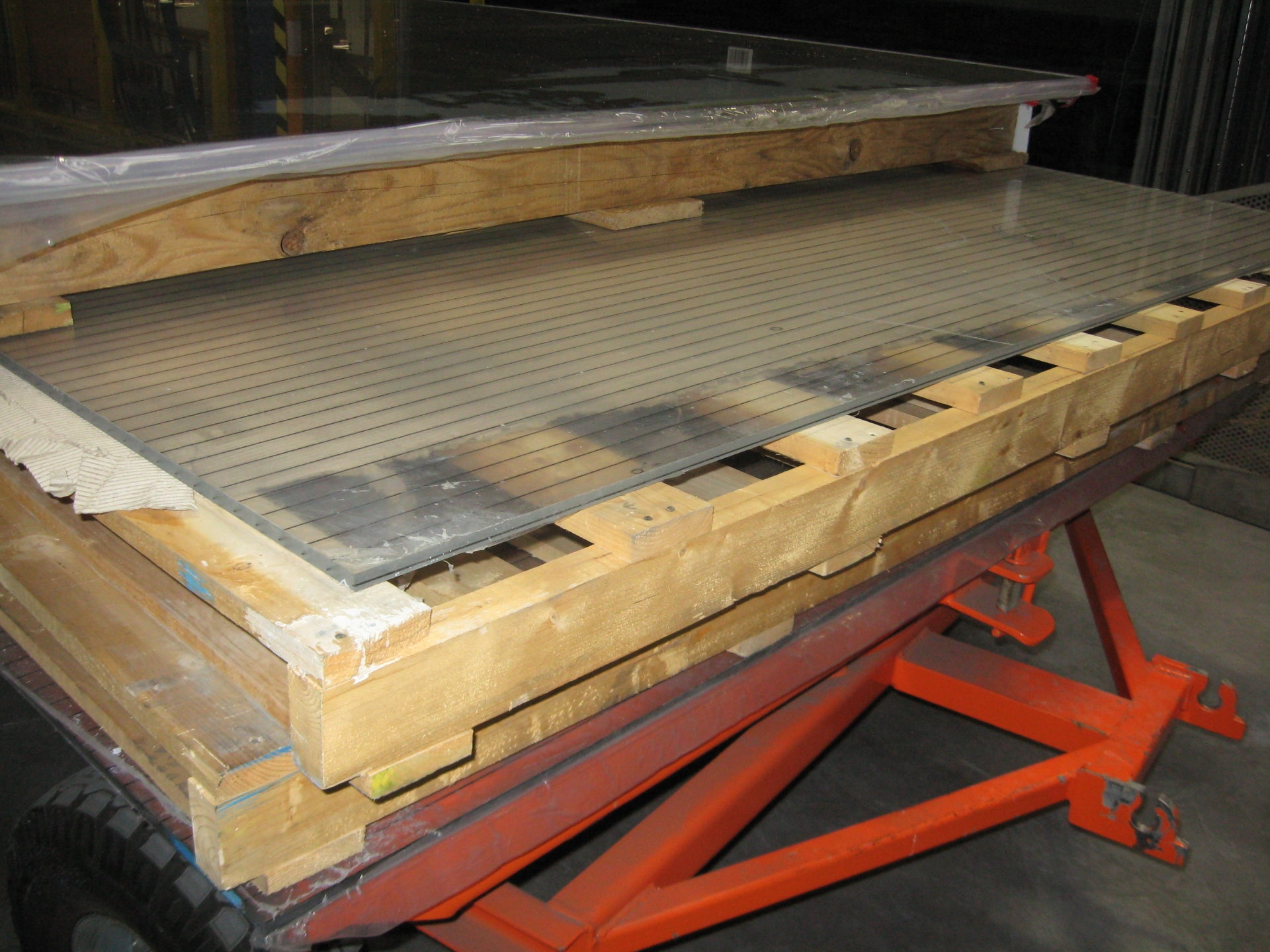 Line for casting large plexiglass panels was installed in Akripol plant. Maximum plates size is 4,2 m x 2,2 m. Plexiglas is used for road noise protection and other purposes. We carried out the supply of electrical and control equipment and automation of whole production transport line.